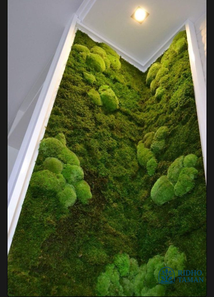- Moss lumut full panel atau sebagian dinding